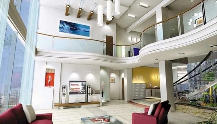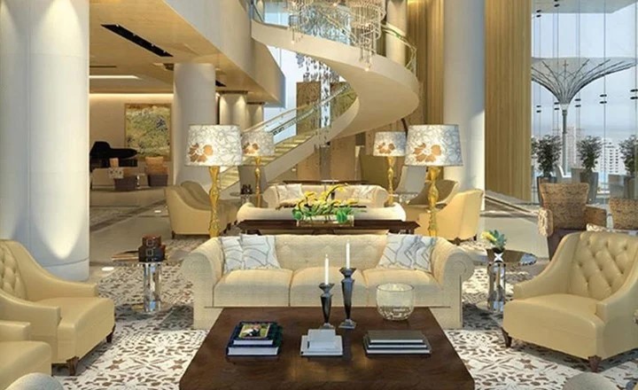 El vestíbulo de la casa tiene nueve ascensores: dos para las áreas de estacionamiento, tres para acceder a las suites, dos para el personal de servicio y otros dos para uso exclusivo de la familia.