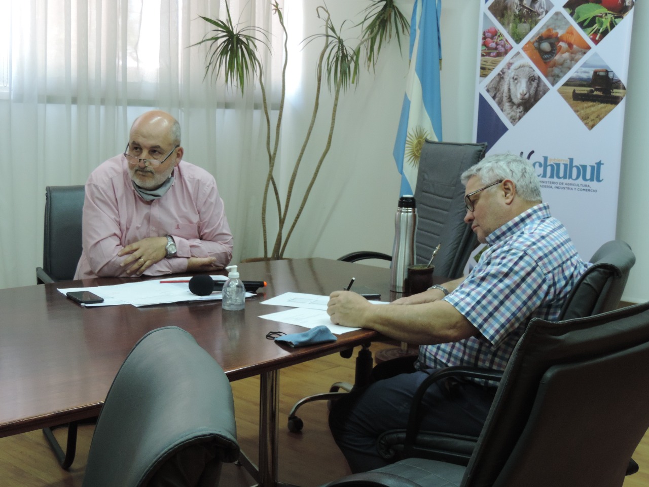 Participaron en la reunión la subsecretaria de Ganadería, Verónica Iannini, y de Agricultura, Claudio Mosqueira; representantes de INTA, SENASA; y la Comunidad Fentren de Cushamen y Fofo Cahuel en representación de los productores.
