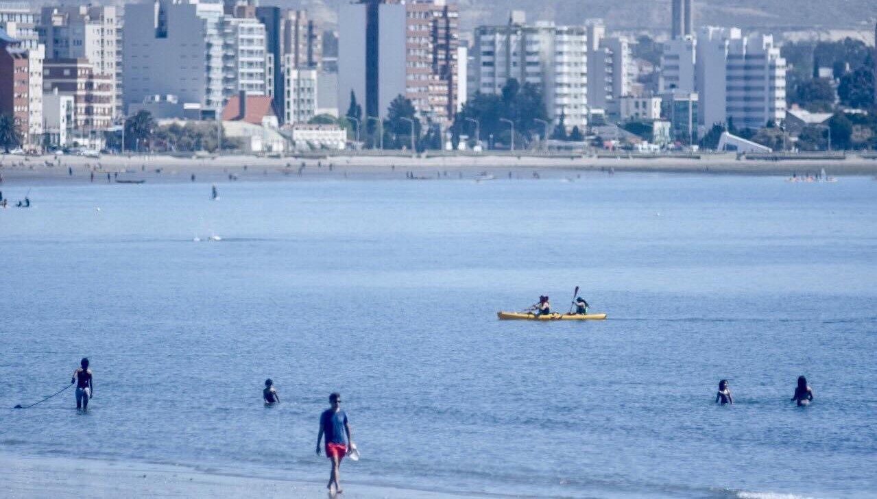 Una situación similar ocurrió en Rada Tilly, donde se vio a ciudadanos disfrutar de las bondades de la costa y del día caluroso.