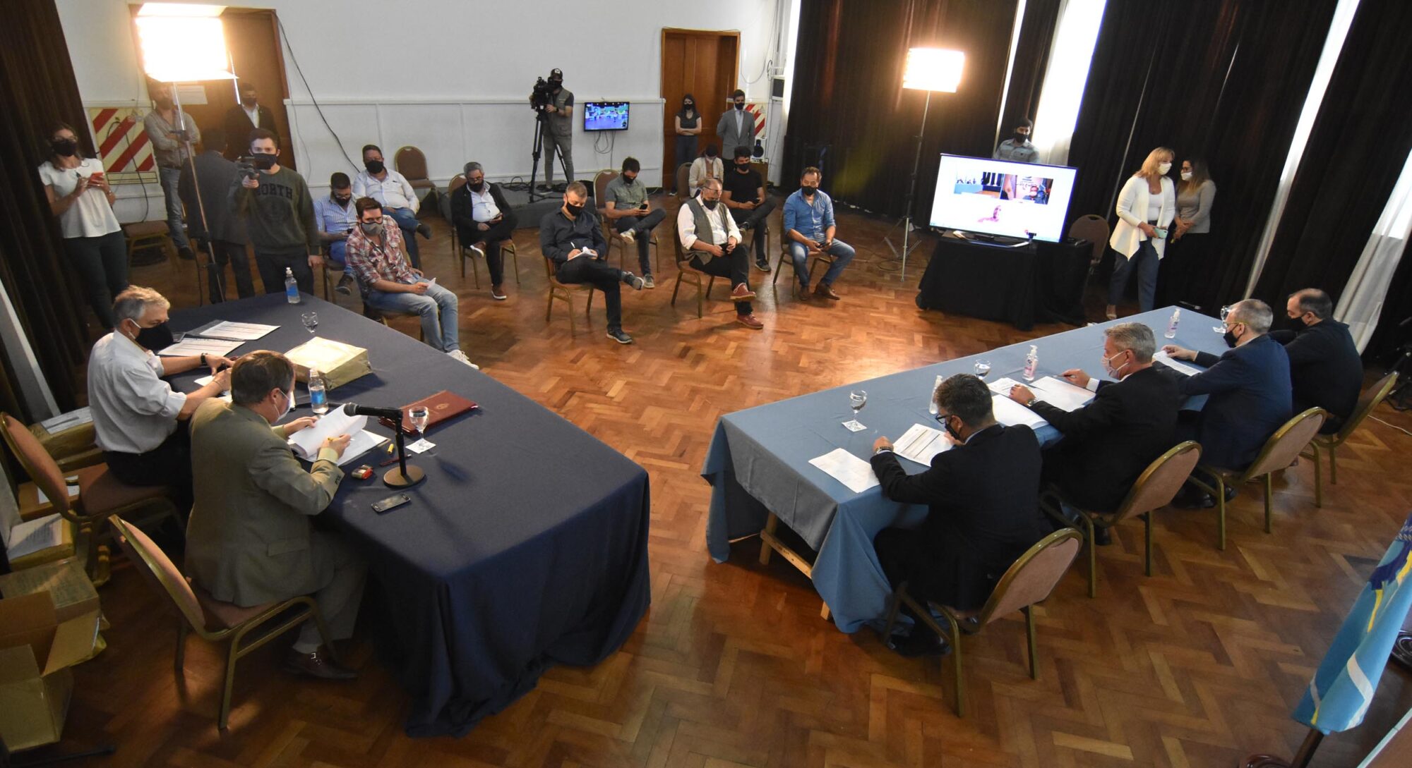 Participaron los ministros de Gobierno y Justicia, José María Grazzini; de Infraestructura, Energía y Planeamiento, Gustavo Aguilera; y de Salud, Fabián Puratich; y oferentes, mientras que por videoconferencia hicieron lo propio el intendente de Lago Puelo, Augusto Sánchez; y el diputado Provincial, Pablo Nouveau.