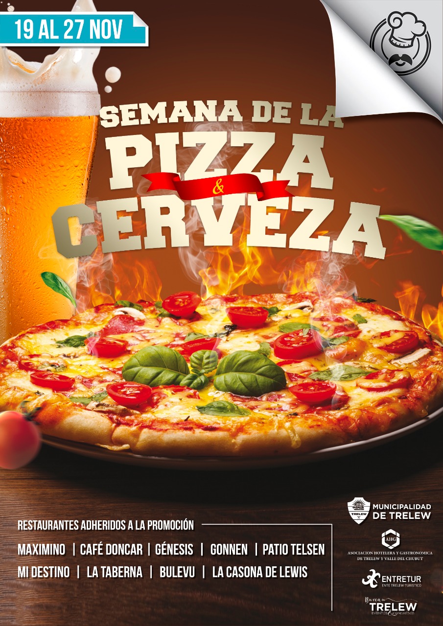 La Semana de la pizza y la cerveza brindará precios promocionales y se acompañará con distintas cervezas, sumando variedades artesanales. Los establecimientos que se adhieren en esta oportunidad son: Maximino, Café Doncar, Génesis, Gönnen, Patio Telsen, Mi Destino, La Taberna, Bulevú y la Casona de Lewis.