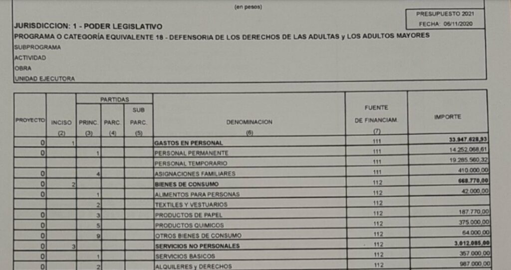 “El presente proyecto de presupuesto responde a las características de una norma inicial, que ha sido preparada para facilitar la organización de la Oficina en su funcionamiento mínimo indispensable a fin de alcanzar los objetivos pretendidos por la sanción de las leyes de su creación”, puntualiza la nota que ingresó a la Legislatura y a la que tuvo acceso Metadata.
