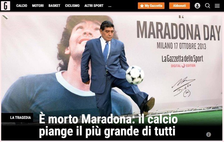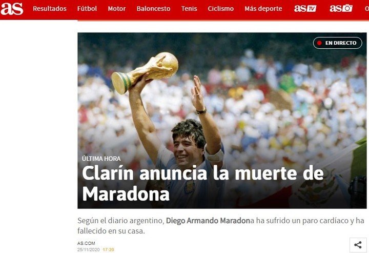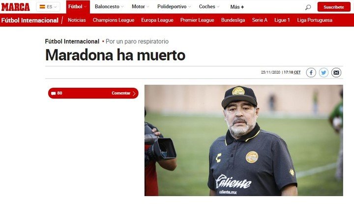 El crack argentino falleció a los 60 años en su casa de Tigre después de una paro cardiorrespiratorio. Los principales portales del mundo deportivo se hicieron eco. Conmoción en el planeta fútbol.