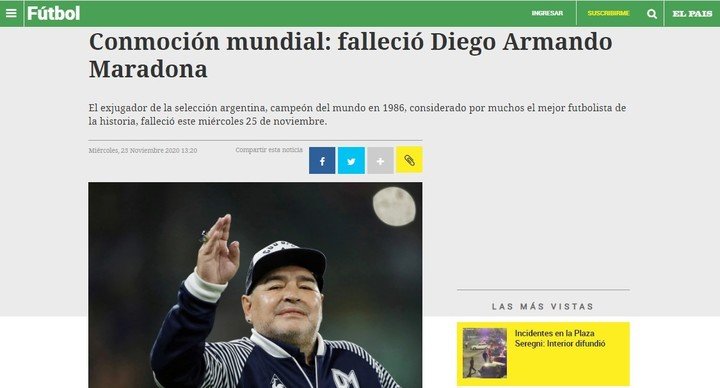El mundo se hace eco de la muerte de Diego Armando Maradona