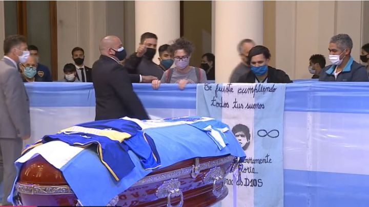 El velorio se realiza a cajón cerrado y, por indicación explícita de la familia de Maradona, se extenderá hasta las 16 de este jueves (en un principio, se especuló con que dure 48 horas pero fue descartado).
