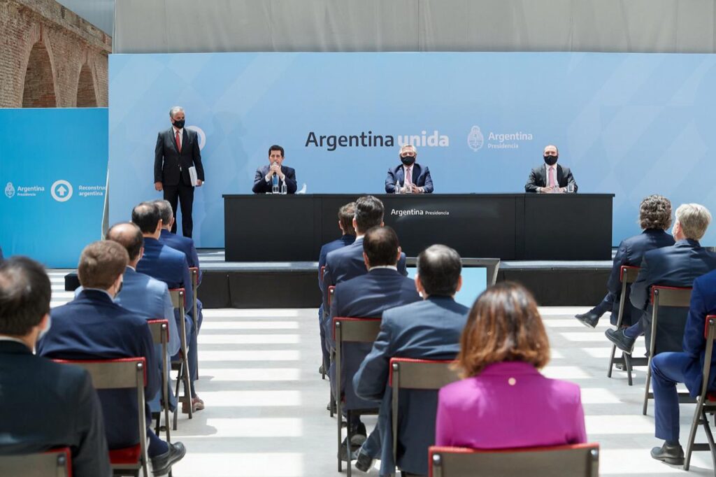 Además del presidente de la Nación y el ministro de Pedro, estuvieron presentes en representación del Gobierno nacional el ministro de Economía, Martín Guzmán y la titular de la AFIP, Mercedes Marcó del Pont.