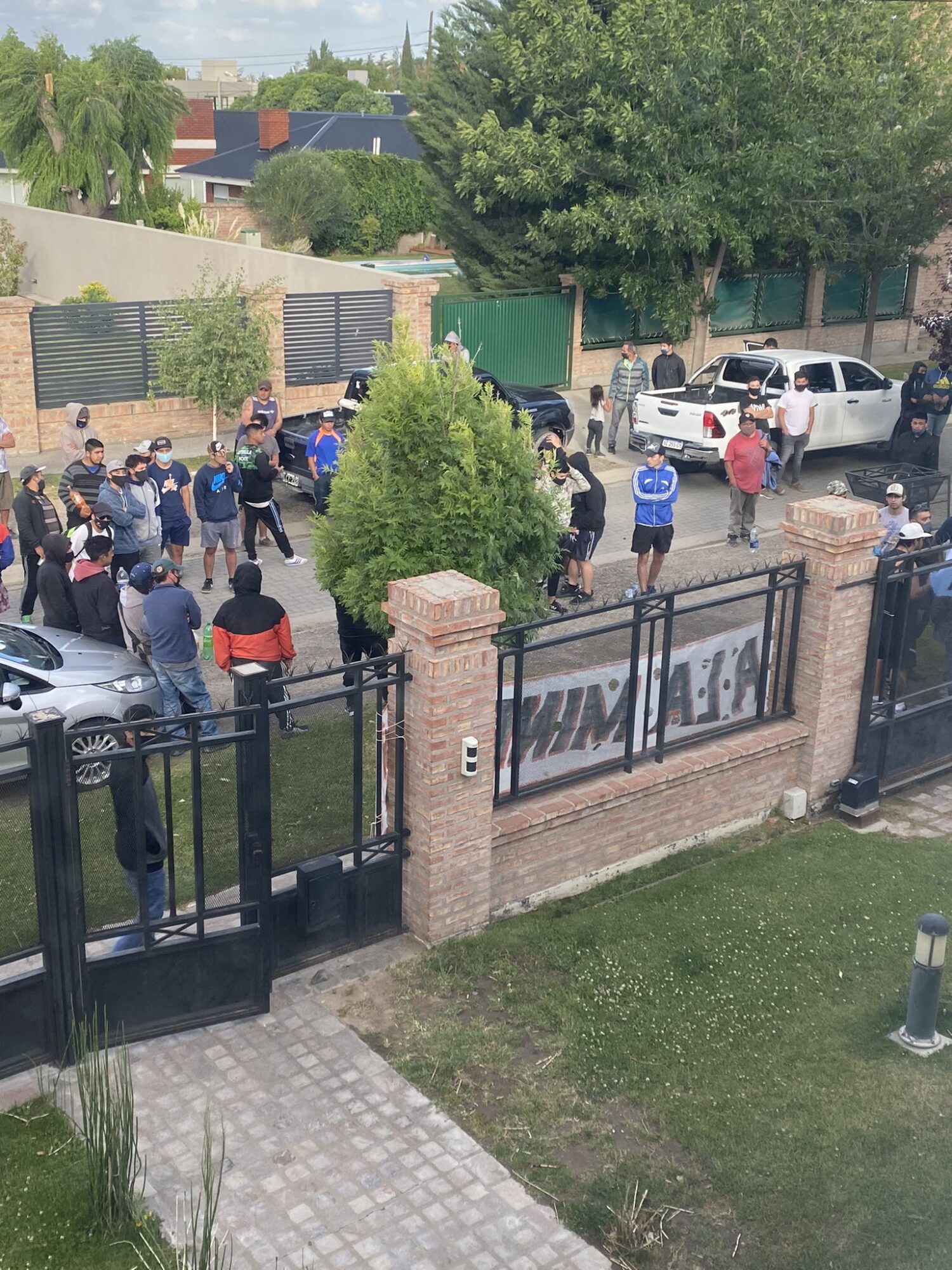 Las personas que están acampando en el exterior de la vivienda son alrededor de 100 militantes promineros. Después de una hora y media, no hubo ningún llamado de autoridades provinciales y municipales. Ni siquiera acudió Policía al lugar.