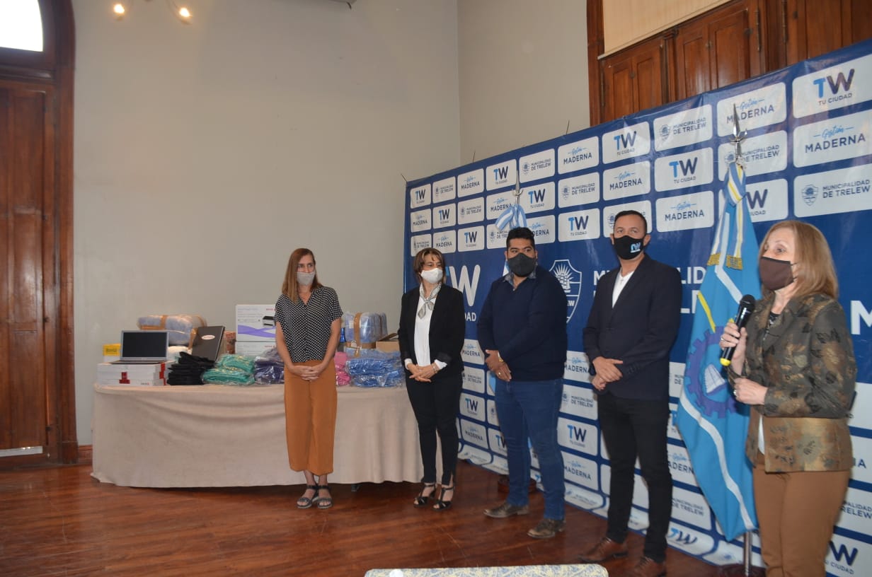 Concretamente, se hizo efectiva -a requerimiento de las Cooperativas- la entrega de una notebook, una impresora, bolsos tipo maternal, resmas de papel, ambos para el personal, barbijos y camisolines descartables, guantes, alcohol en gel, termómetros digitales y libros de actas.
