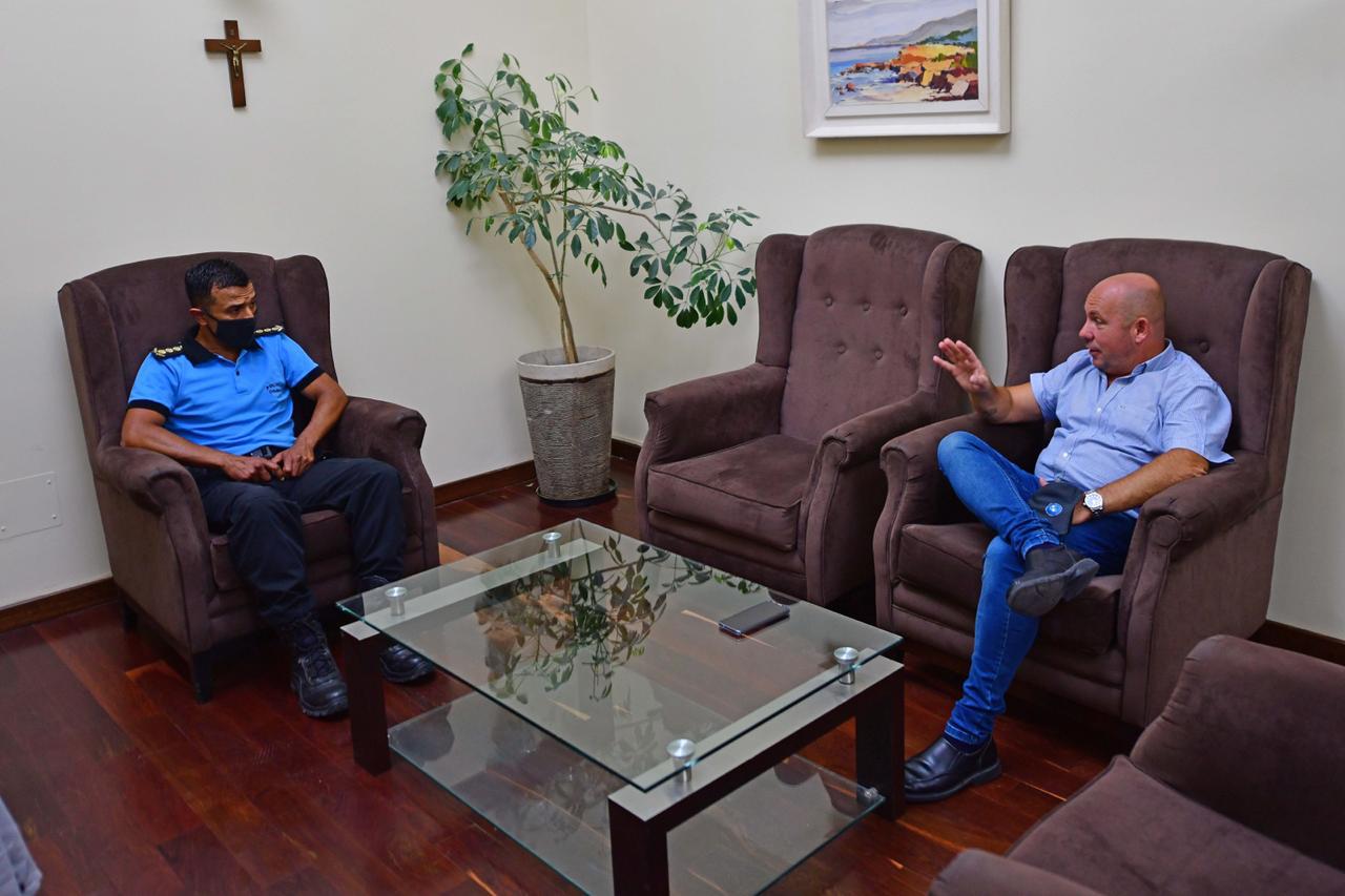 El Vicegobernador a cargo del Ejecutivo Provincial, Ricardo Sastre, recibió esta mañana en Casa de Gobierno al titular de la Jefatura de Policía de Chubut, Comisario Principal Miguel Gómez, para dialogar sobre los operativos que se llevarán a cabo desde el Ministerio de Seguridad para la celebración de año nuevo.