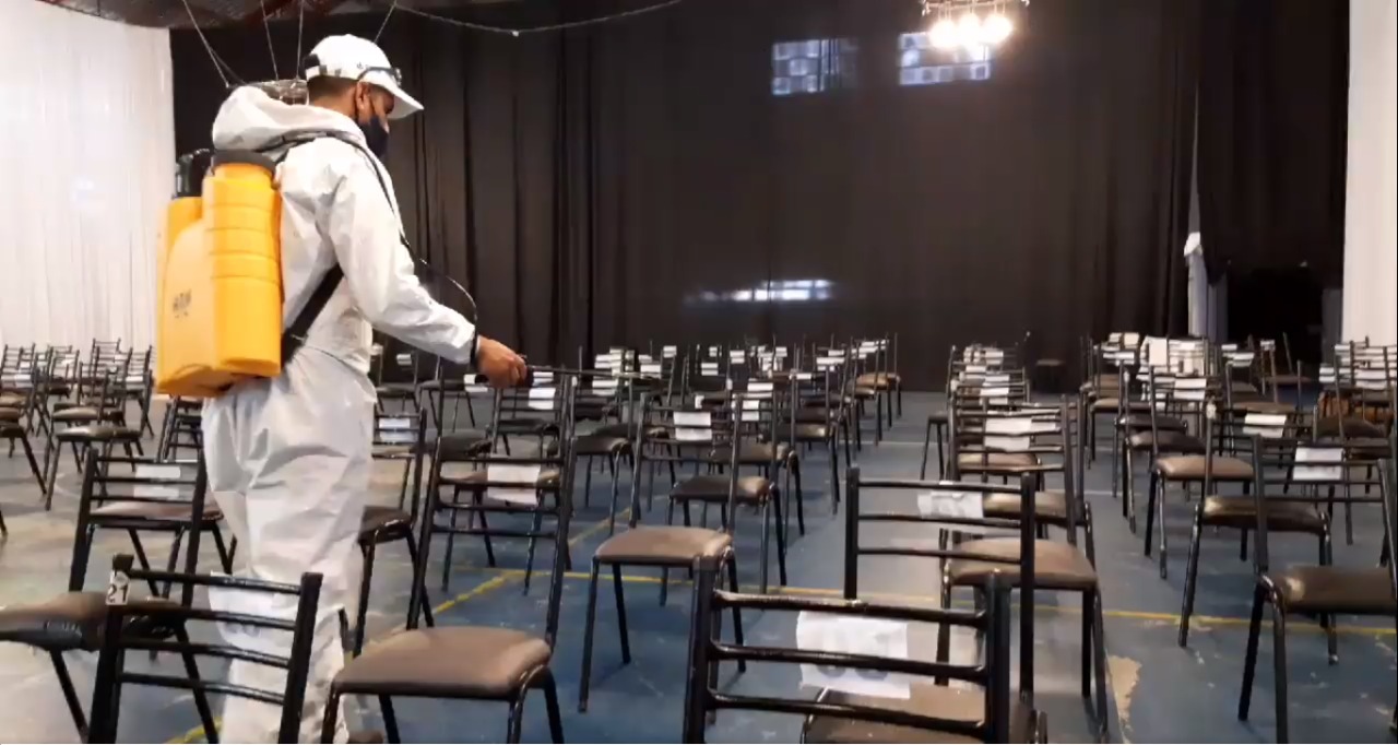 El programa de desinfección, como herramienta para evitar la propagación del CoViD-19, comprendió el “Teatro del Mar” (Gimnasio “Héroes de Malvinas” de Playa Unión), entre otros lugares que albergan concentración de público.