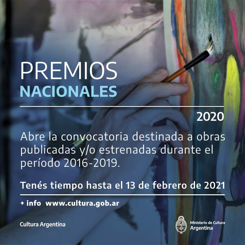 Para bases y condiciones se podrá obtener mas información en https://www.cultura.gob.ar/premios-nacionales-abre-la-convocatoria-9946/. Mientras que para inscripciones podrán ingresar a https://forms.cultura.gob.ar/index.php/315384?lang=es