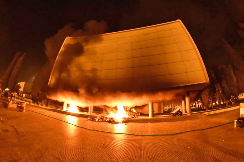 Continuando con el raid, en los primeros minutos del día siguiente, alrededor de un centenar de manifestantes se dirigen a uno de los accesos en Casa de Gobierno donde además de romper las vallas producen un incendio similar que afecta una puerta doble de madera, dañando el interior, afectando también la provisión de servicios.
