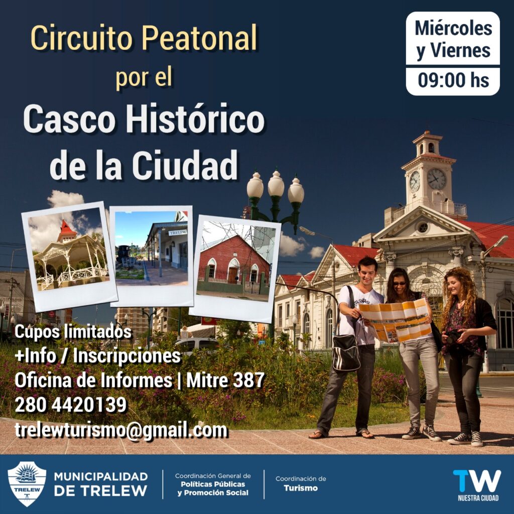 La Coordinación de Turismo de la Municipalidad de Trelew ofrece diferentes propuestas en temporada de verano para conocer, valorar y cuidar los recursos turísticos y patrimoniales de la ciudad. A través de la aplicación Trelew Turismoturistas y residentes podrán ver toda la oferta y conocer los circuitos temáticos y los servicios turísticos de la ciudad.