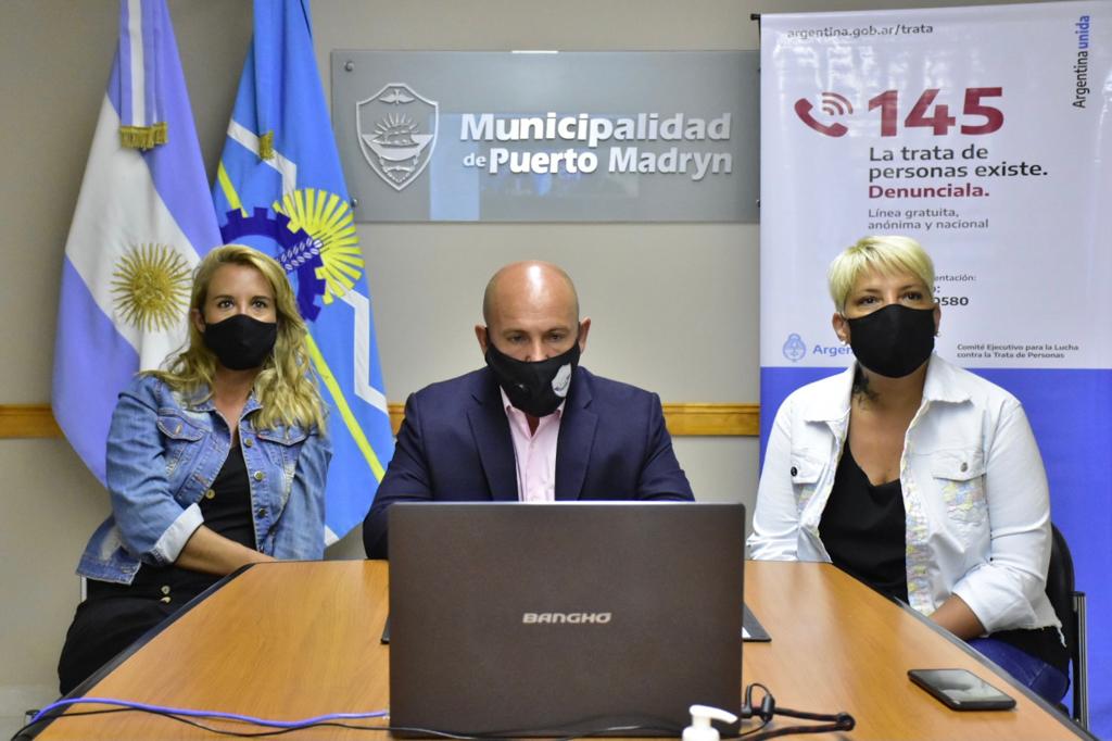 El intendente de Puerto Madryn, Gustavo Sastre, encabezó hoy una videoconferencia junto al presidente del Comité Ejecutivo para la lucha contra la Trata y Explotación de Personas y para la Protección y Asistencia a las Víctimas dependiente de Jefatura de Gabinete, Gustavo Vera.