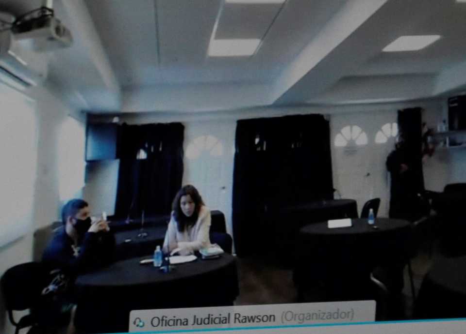 La audiencia se llevó a cabo a través del sistema de video conferencia en la oficina judicial de la ciudad de Rawson. Jaramillo Mella fue asistido por la defensora oficial Janet Davies.