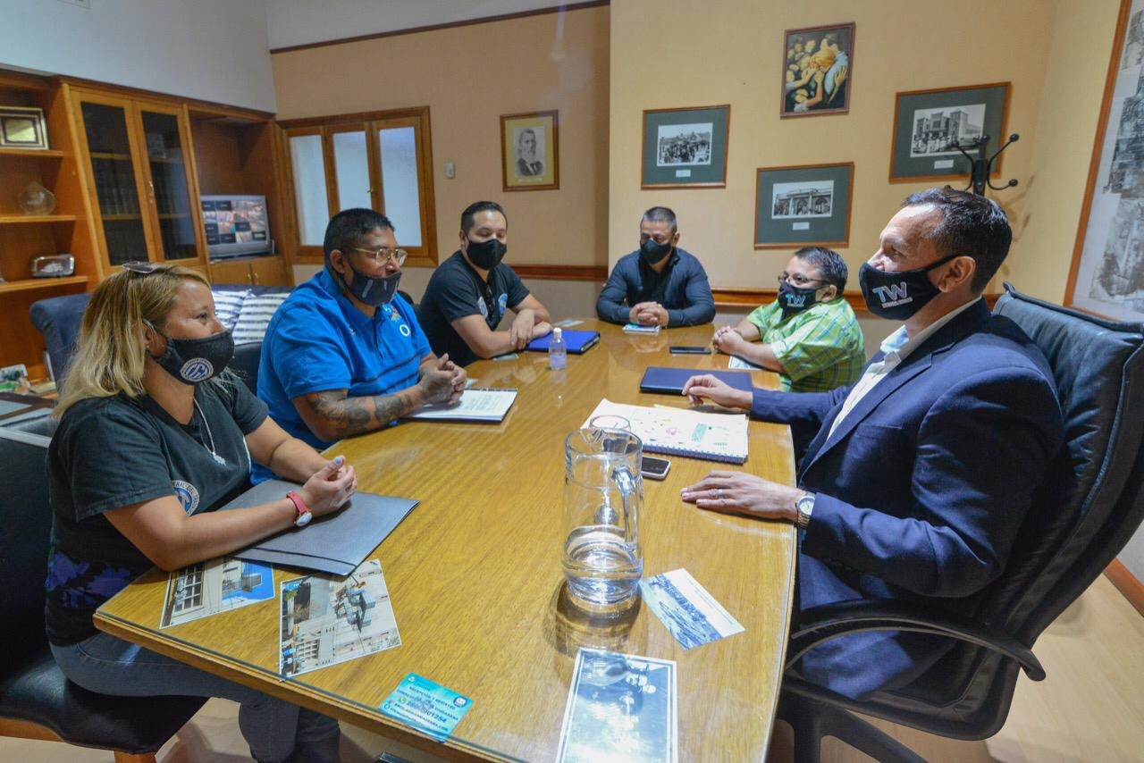 El intendente Adrián Maderna recibió en su despacho a representantes de la delegación regional de la Unión de Personal de Seguridad y Afines de la Patagonia (UPSAP) con quienes abordó diferentes temáticas vinculadas con el desarrollo de la actividad en la ciudad.