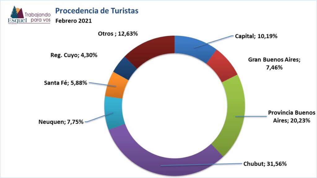 Con respecto a la procedencia no hubo datos significativos de extranjeros, por lo que el total de los turistas fue de procedencia nacional; En su mayoría arribaron desde Buenos Aires (37,88%), dividido entre provincia de Buenos Aires, CABA, y Gran Buenos Aires, seguido por Chubut ( 31.56%) y en menor medida Neuquén (7,75%).