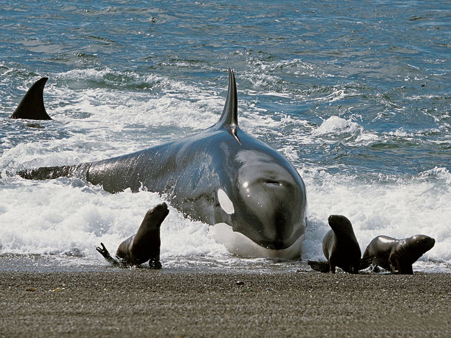 Las orcas (Orcinus orca) se observan en Península Valdés (Patrimonio de la Humanidad desde 1999), entre los meses de marzo, abril y mayo; siendo el mes de abril el de mayor presencia.