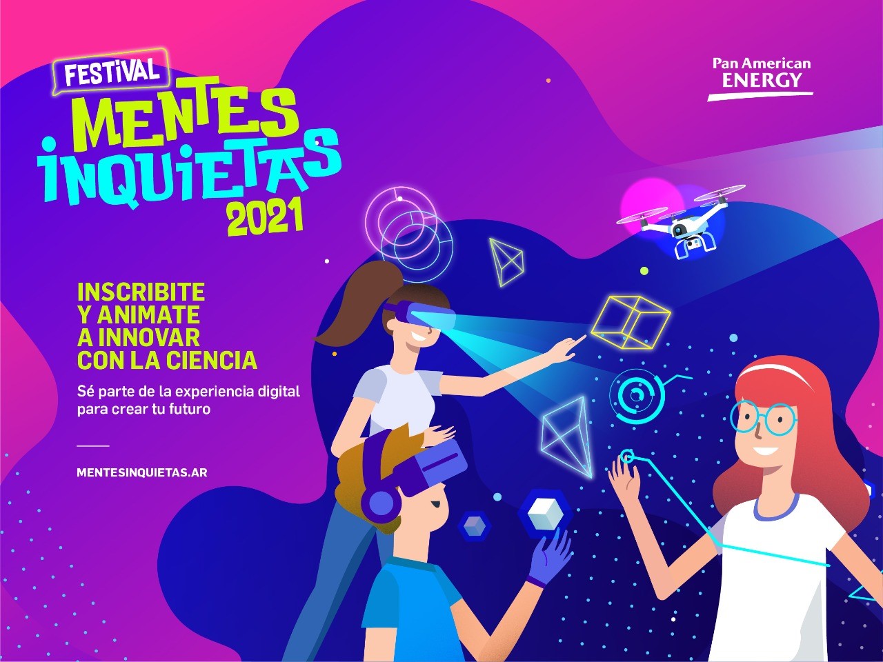 Pan American Energy (PAE) lanza “Mentes Inquietas”, una propuesta didáctica 100% gratuita y virtual, que busca fortalecer el vínculo de los jóvenes con las disciplinas y vocaciones del futuro. El evento, que tendrá lugar del 16 al 20 de marzo, abrió la inscripción a través del sitio www.mentesinquietas.ar