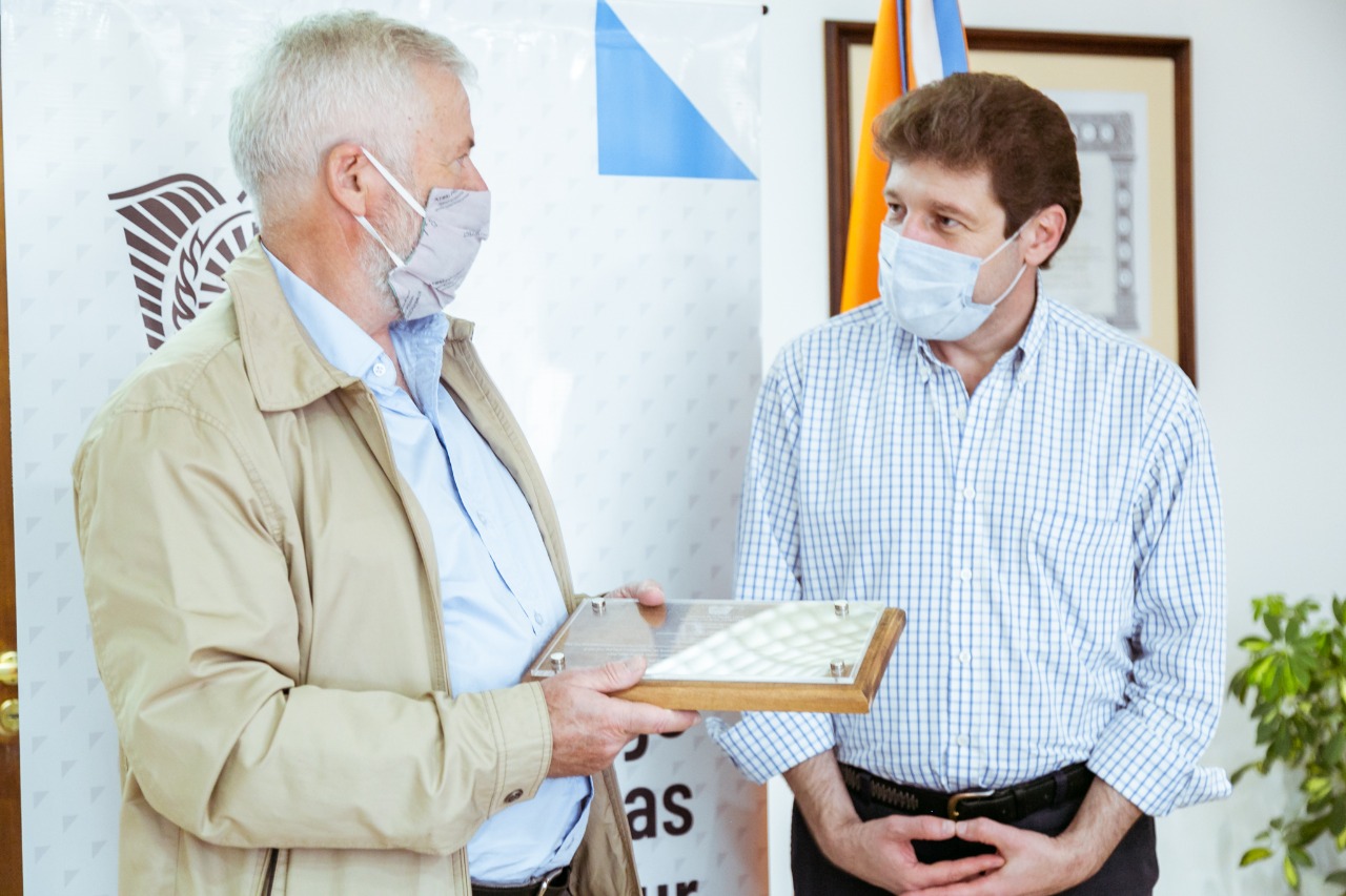 Eduardo Olivero, considerado una de las eminencias de la investigación antártica y fueguina, recibió una plaqueta recordatoria del hallazgo paleontológico que puso a la geología antártica argentina en el mapa mundial.