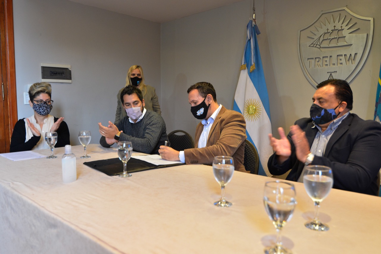 El intendente de Trelew, Adrián Maderna, presidió este miércoles junto al Coordinador de Municipios del Ministerio del Interior de Nación, Emanuel Colliñir, la firma de actas acuerdo con empresarios locales para posibilitar la inserción en el ámbito laboral de más de 120 jóvenes de la ciudad, en el marco de los programas ‘Jóvenes con más y mejor trabajo’ y ‘Promover Discapacidad’.