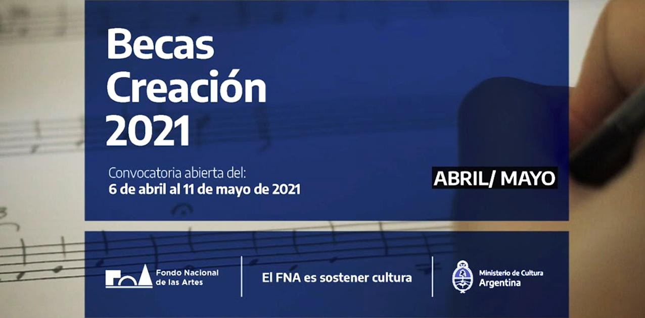 La convocatoria a las Becas Creación 2021 estará abierta desde este martes 6 de abril hasta el próximo martes 11 de mayo. En este 2021 el Fondo Nacional de las Artes se enfocará en fortalecer, fomentar y estimular la concreción de proyectos artísticos-culturales con una mirada amplia y federal.