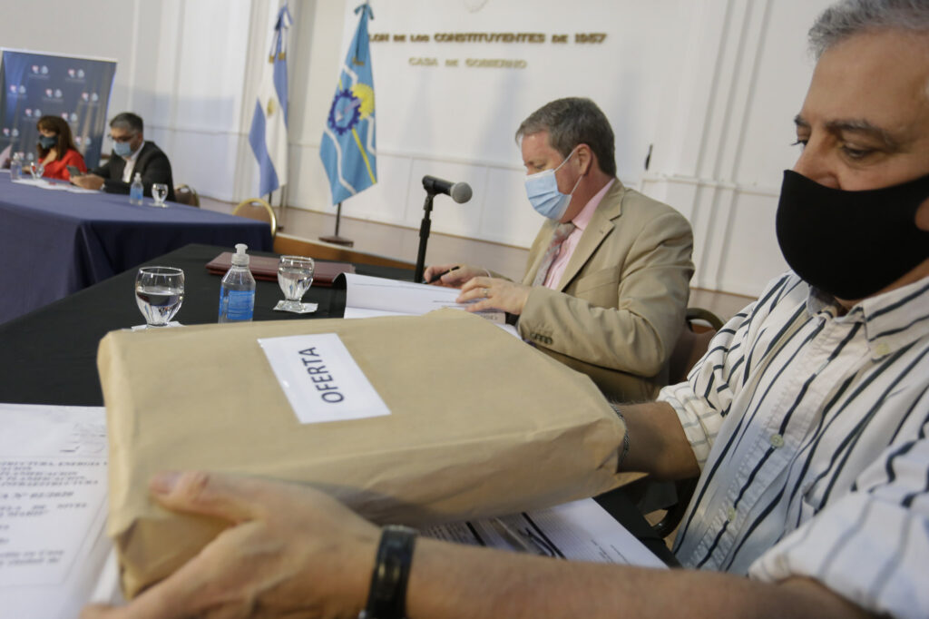 El escribano general de Gobierno, Marcelo Lizurume, abrió los sobres de las ofertas correspondientes a la Licitación Pública N° 02/21 del proyecto construcción de la Escuela Nivel Secundario N° 7717 del B° Stella Maris por un presupuesto oficial de $ 115.239.980,00.