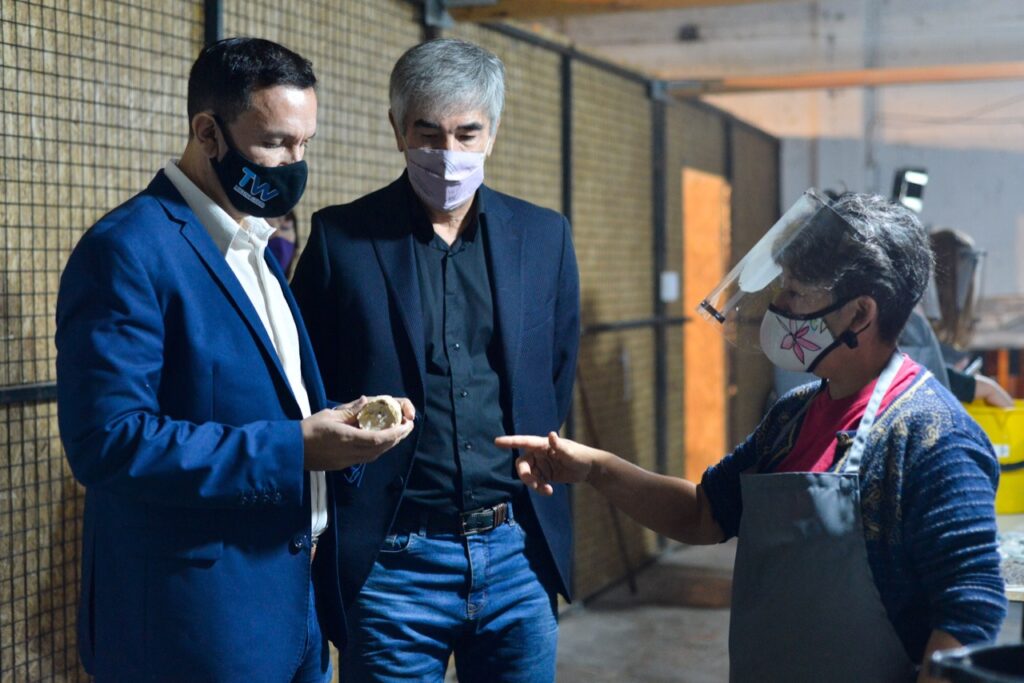 “Es un grupo de jóvenes que elaboran Ecoleña con material ecológico de reciclaje que sirve de insumo para calefacción a diferentes familias que no cuentan aún con el servicio de gas natural, fortaleciendo de este modo el Plan Calor que se ejecuta invierno tras invierno”, destacó el intendente Adrián Maderna durante la visita que realizó hoy.