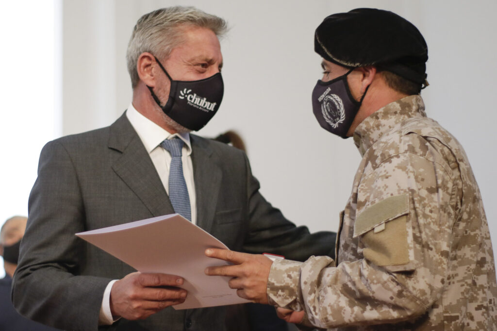 El gobernador del Chubut, Mariano Arcioni, participó este lunes del acto de reconocimiento al mérito a miembros de la Policía Montada, quienes el último viernes hallaron al peón rural Venancio Maliqueo, oriundo de Las Plumas, quien era intensamente buscado desde hacía una semana.