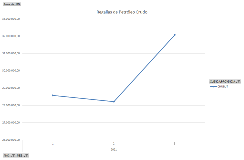 La suba en el precio del barril que durante marzo cerró a un promedio de u$s 62,33, el aumento de la producción y el valor del dólar que sube lentamente, pero sin parar, ayudaron a que los ingresos por regalías se ubiquen en los 32 millones de dólares en el tercer mes de 2021.