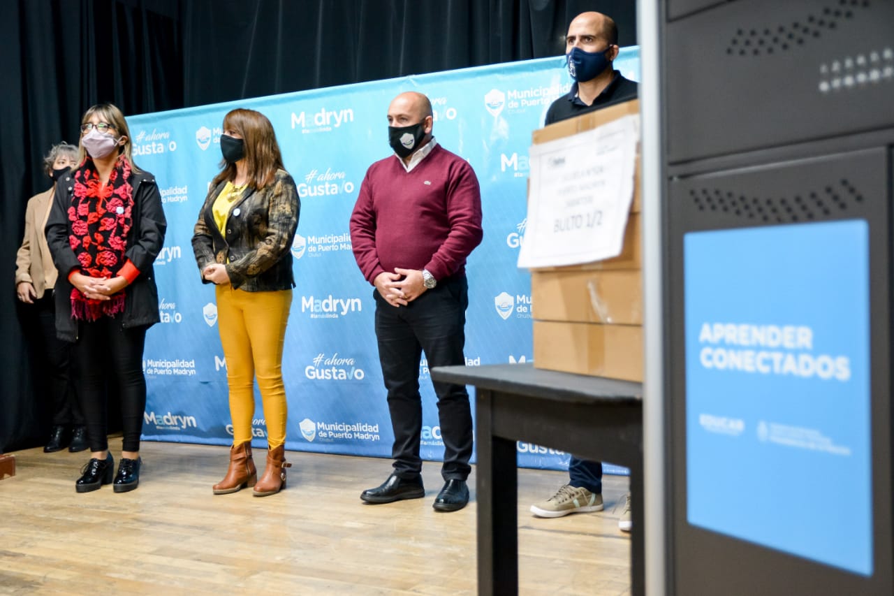 En la mañana de hoy se concretó la entrega de materiales educativos informáticos para escuelas de Puerto Madryn. Tras las gestiones realizadas por el intendente Gustavo Sastre, se dispuso herramientas del programa junto al Ministerio de Educación de la Provincia, el cual alcanzará a establecimientos de distintos niveles.