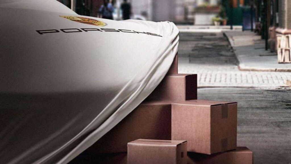 Para recordar ese momento, la marca alemana subió a su cuenta de Instragram una imagen que muestra cajas de cartón tapadas con una lona que tiene el logo de Porsche.