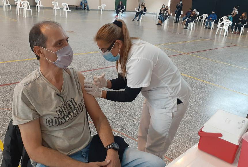 Por otro lado, en el Salón de Usos Múltiples (SUM) de la Escuela N° 76 de Esquel se está dando continuidad al plan de inmunización contra el virus destinado a los trabajadores del ámbito de la Educación.