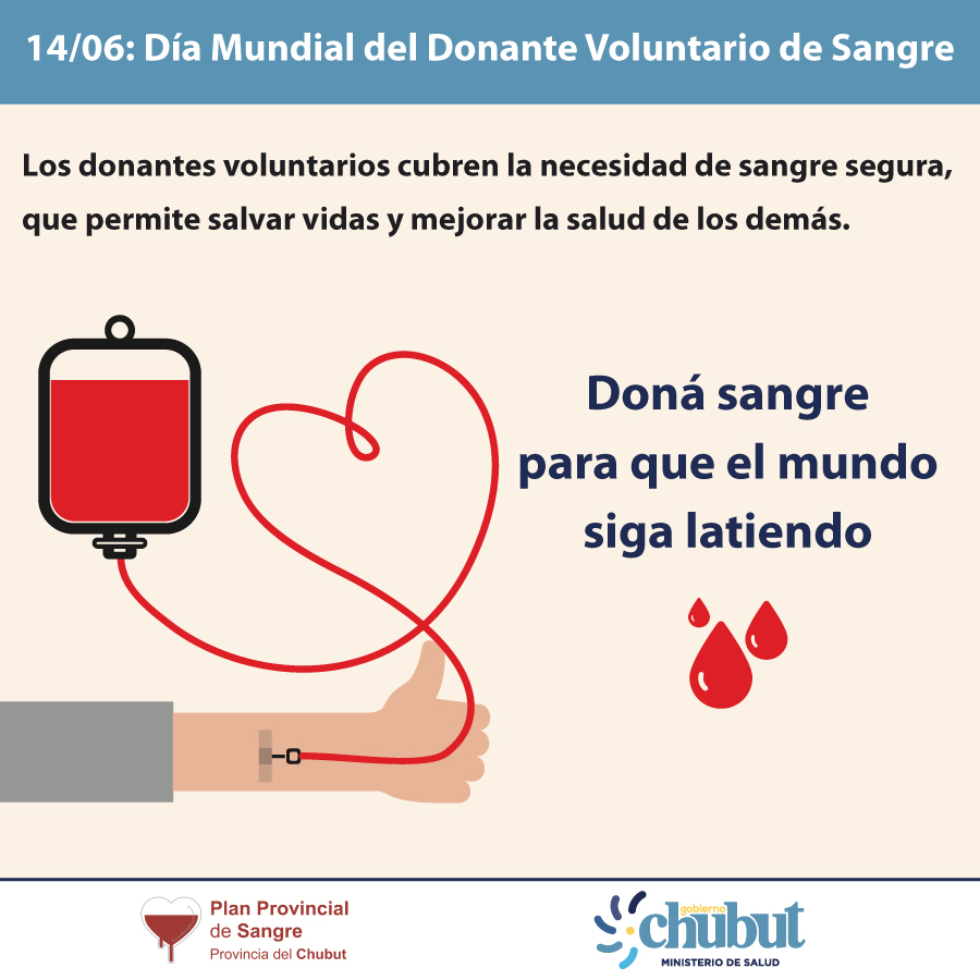 El 14 de junio de cada año se conmemora el “Día Mundial del Donante de Sangre”. La efeméride tiene por objetivo concientizar a la población respecto a la importancia que revisten las donaciones regulares de sangre, ya que sólo a través de éstas el sistema sanitario puede asegurar una provisión adecuada, segura y de calidad, que esté disponible para garantizar el acceso a la misma por parte de toda aquella persona que pueda llegar a necesitar una transfusión de sangre.