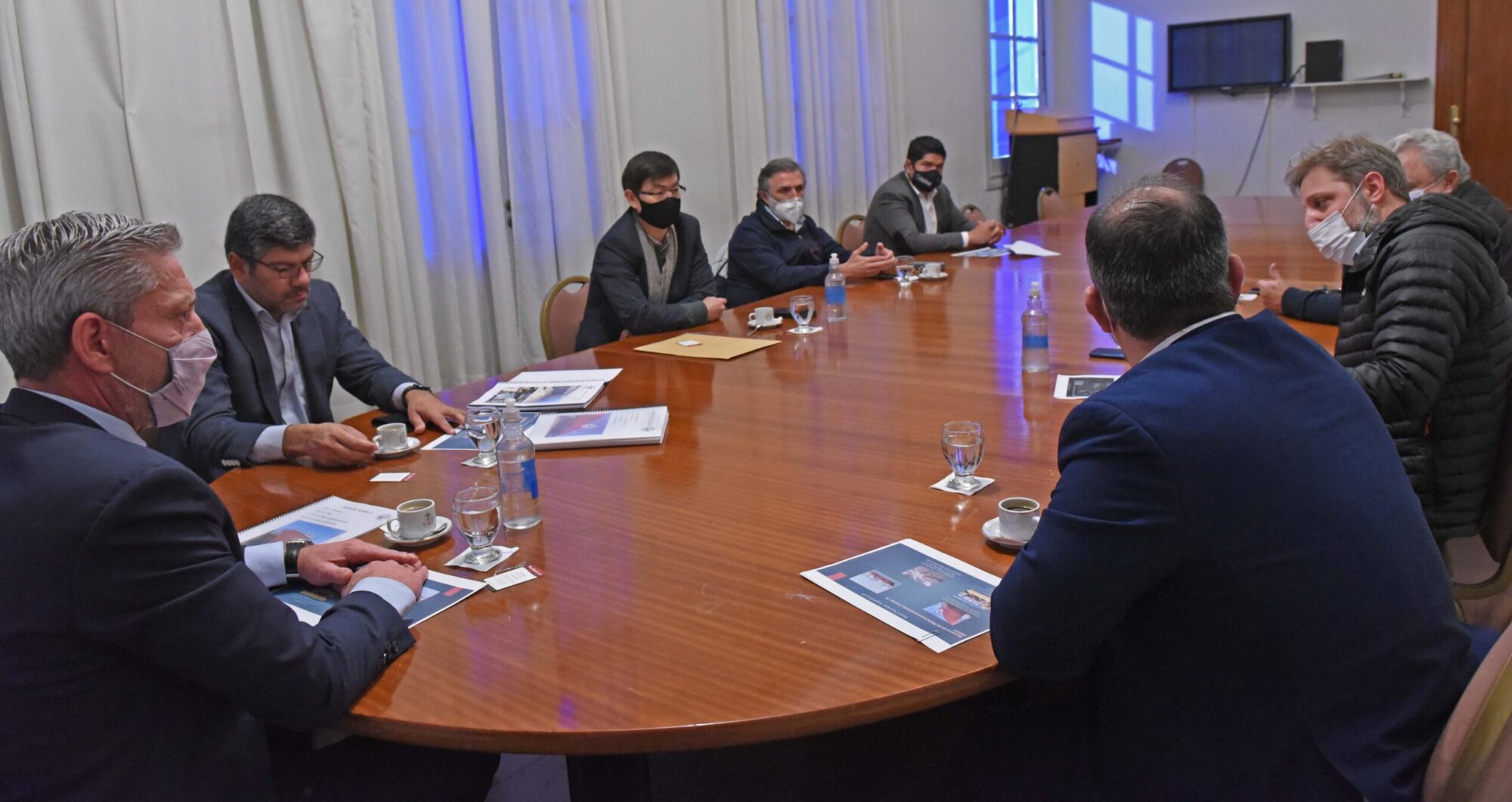 El encuentro se realizó en Sala de Situación de Casa de Gobierno, donde participaron el ministro de Gobierno y Justicia, José María Grazzini, los secretarios de Pesca, Gabriel Aguilar y de Trabajo, Cristian Ayala; y en representación de la empresa Red Chamber Argentina S.A, asistieron el vicepresidente, Marcelo Mou; el gerente General, Eduardo Navarro y el representante legal, José Belori.