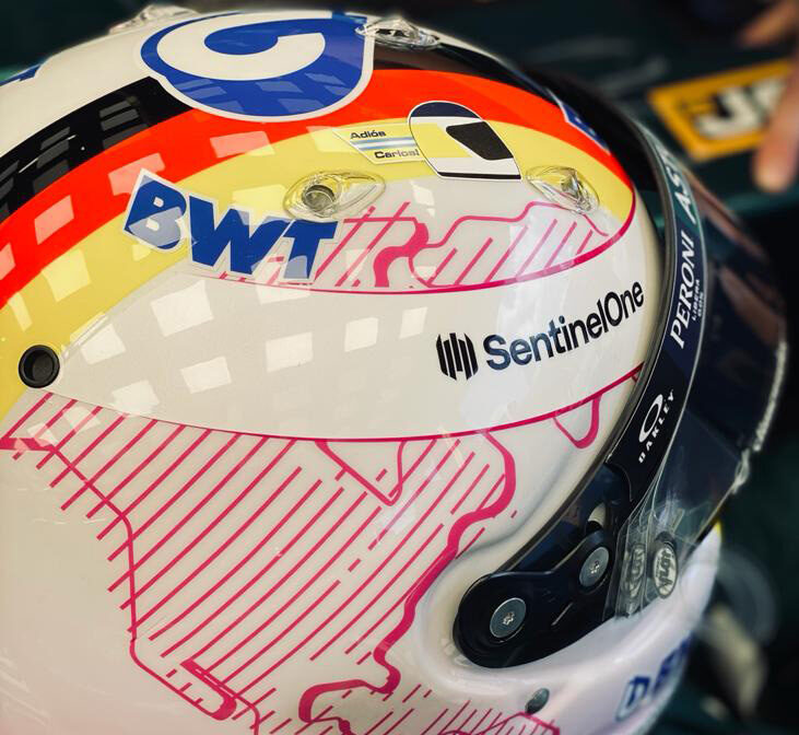 El alemán, de 34 años, lució un casco en el que puede observarse la frase ‘Adiós Carlos’, la bandera argentina y el dibujo característico que solía utilizar el piloto argentino en el elemento protector de la cabeza, por las décadas del ’70 y ’80.