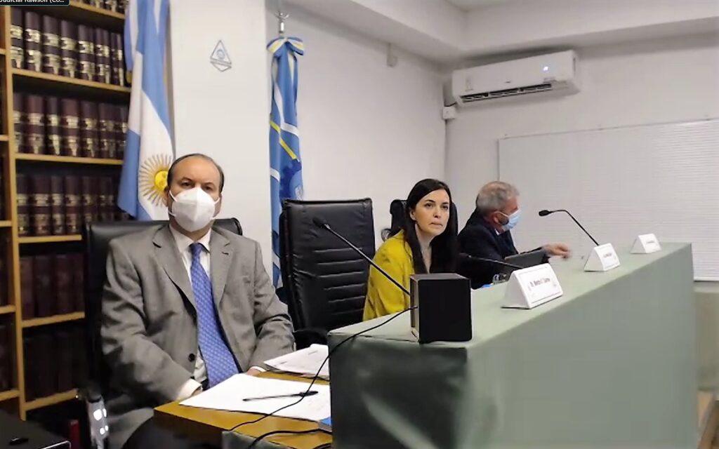 El tribunal de juzgamiento está integrado por Mónica García de circunscripción judicial de Comodoro Rivadavia, Martín O Connor por la de Esquel y César Zaratiegui por Trelew. La primera de las mencionadas preside las audiencias.