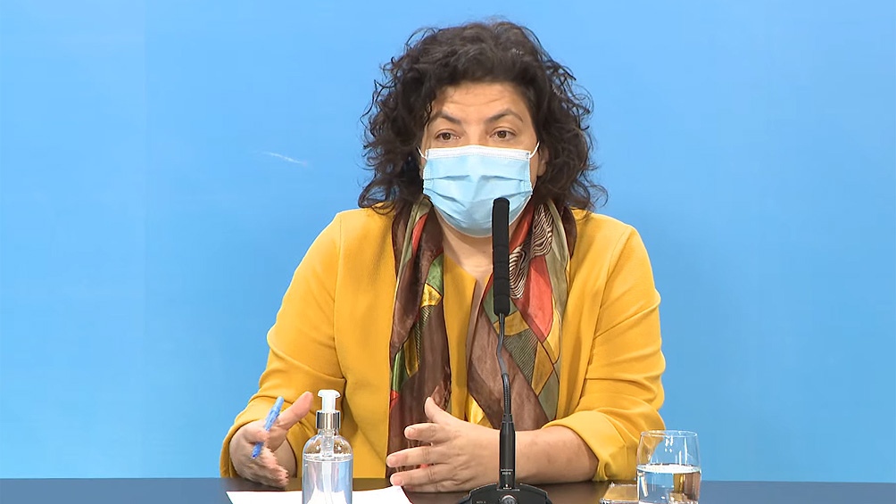 Al hablar ante la prensa, la titular de la cartera de Salud destacó que Argentina está “casi llegando a las 42 millones de dosis” de vacunas contra el coronavirus recibidas y precisó que el “90 por ciento ya está distribuido”.