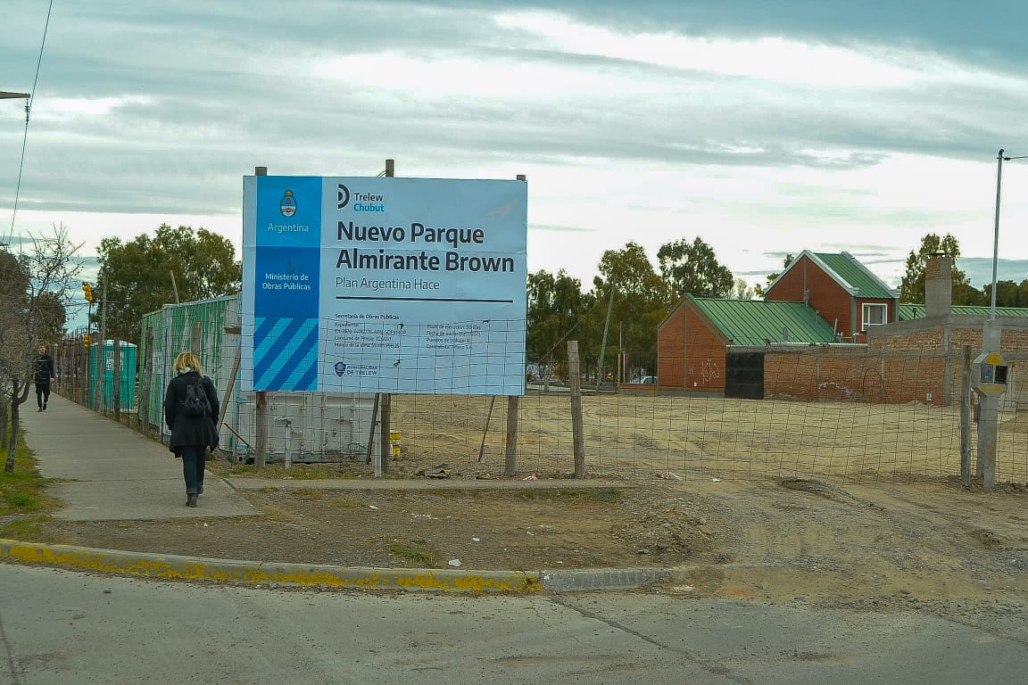 Avanza en Trelew la construcción del Parque Almirante Brown, que estará ubicado en calle Capitán Murga, entre Bolivia y Belgrano, en la zona sur de la ciudad. Se trata de una obra proyectada en el marco del convenio firmado por el Municipio y el Ministerio de Obras Públicas de la Nación, como parte del plan federal Argentina Hace.