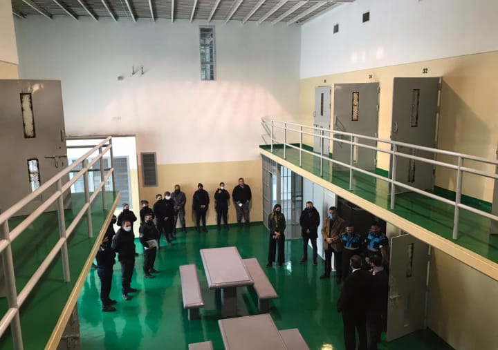 La magistrada y los funcionarios judiciales recorrieron las instalaciones y supervisaron las obras de adecuación solicitadas, en conjunto con el Dr. José Chávez, Director General Políticas Penitenciarias y Reinserción Social del Ministerio de Gobierno de Chubut; el Comisario Mayor Enrique Daniel Urrutia, jefe del Área Penitenciaria de la Policía del Chubut y el segundo en el cargo, Comisario Paulo Núñez.
