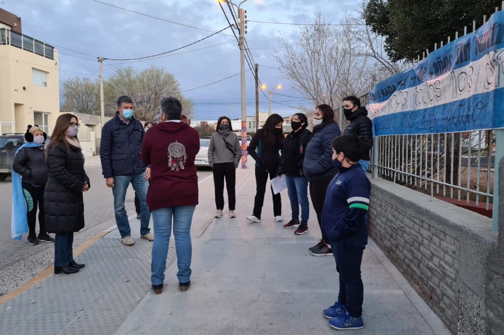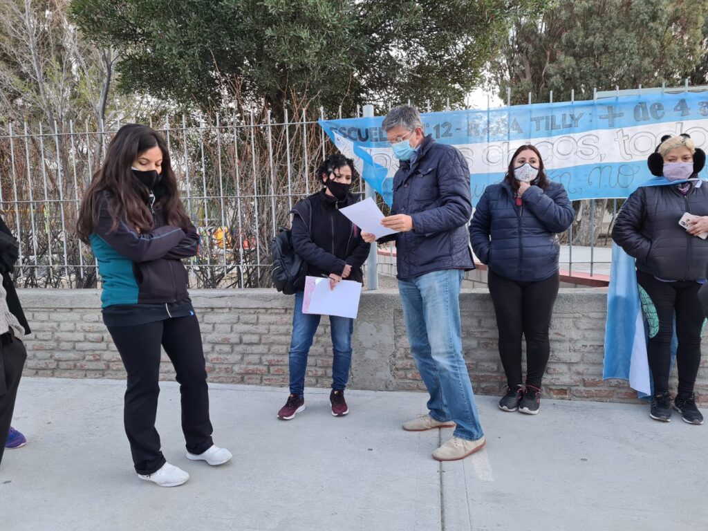 La actividad incluyó una reunión con padres cuyos hijos concurren a la Escuela N° 12 de Rada Tilly y que reclaman por más horas de clases presenciales, ya que una burbuja concurre de 8 a 9,30 y otra de 10 a 11,30.