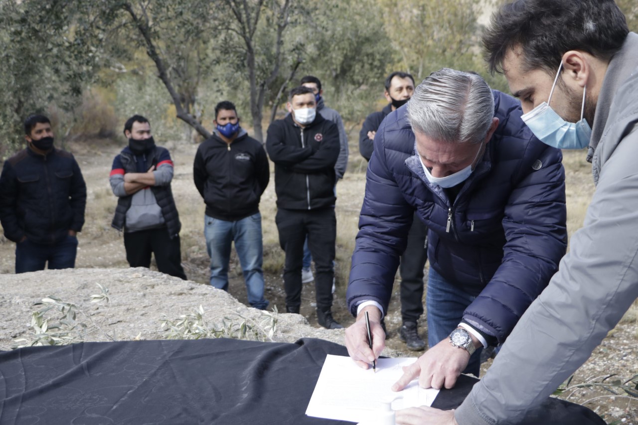 Este sábado, el gobernador del Chubut, Mariano Arcioni, junto al ministro de Agricultura, Ganadería, Industria y Comercio, Leandro Cavaco, firmaron un convenio con el Centro de Empleados de Comercio de Comodoro Rivadavia, para la entregar 40 plantas de olivos con el objetivo de generar un polo demostrativo en pos de la producción olivícola en la Provincia.