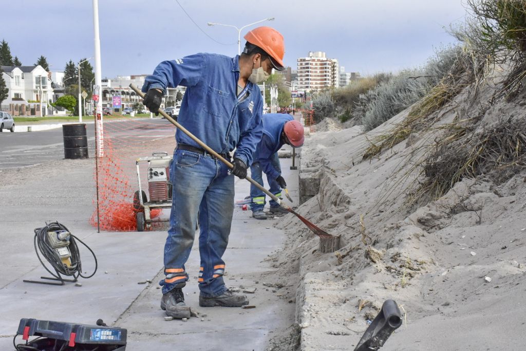 Para poder efectuar los trabajos de refacción, es necesario desplazar la arena apoyada sobre el murete costero. Será retirada en forma manual y se trasladará al frente del mismo médano del lado de la playa. Se evitará el retiro de vegetación excepto que la misma impida la obra civil, en cuyo caso, será trasladada a otro sector del mismo médano junto con la arena.
