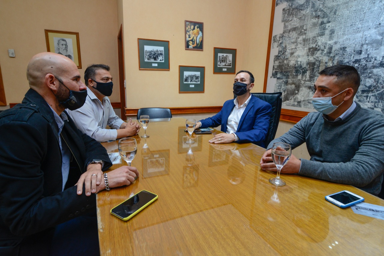El intendente Adrián Maderna junto al coordinador de Inspecciones Generales, Héctor López recibió a Federico Pena Duarte, representante de Bai Producciones para coordinar los detalles de la presentación del espectáculo del mítico guitarrista de Patricio Rey y sus Redonditos de Ricota, Skay.