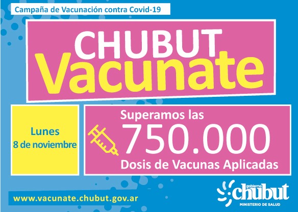 El Gobierno del Chubut destacó que hasta el momento se aplicaron un total de 751.011 dosis de vacunas contra el COVID-19 en el marco de la Campaña “Chubut Vacunate”, la iniciativa que es sostenida por el sistema sanitario público en cada una de las localidades y áreas rurales de la provincia, de un modo gradual y progresivo, teniendo en cuenta la disponibilidad de los insumos recibidos.