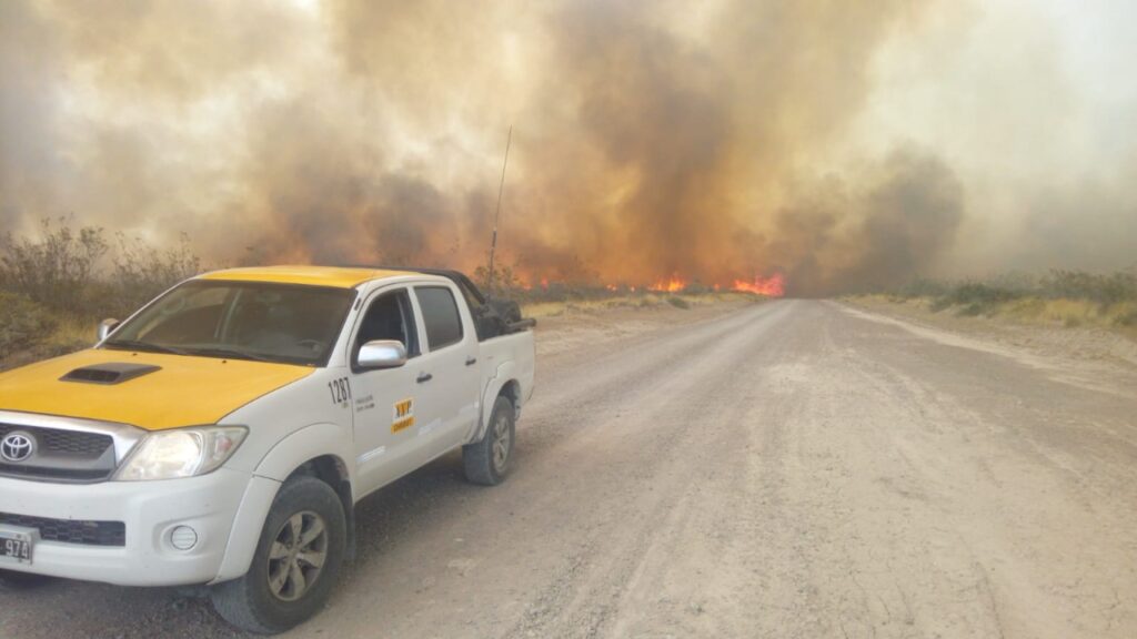 “En los focos está trabajando personal de Defensa Civil, de Vialidad Provincial y Nacional con maquinaria, dos aviones hidrantes del Servicio Nacional del Manejo del Fuego (SNMF). Además, contamos con personal de apoyo de Bomberos Voluntarios de Puerto Madryn y Puerto Pirámides, personal de Policía del Chubut, APSV, y Ministerio de Seguridad y de Turismo”, precisó el funcionario.