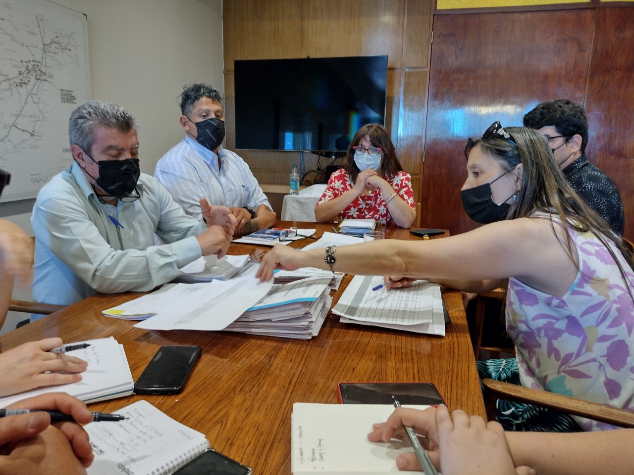 Antes de su recorrida por los establecimientos, Alfredo Dato, asesor de la Dirección de infraestructura del Ministerio de Educación, y la Licenciada Karina Palladino, a cargo del Área de Rendiciones mantuvieron una reunión conjunta con los equipos de los Ministerios de Infraestructura y Educación. Participaron del encuentro además la subsecretaria de Obras Públicas, Mónica Martinez Carpio; el director General de Bienes Reales, Servicios y Planificación de Infraestructura, Maximiliano García; el director General de Obras Públicas y Arquitectura, Alejandro Asensio, y la directora de Obras Públicas por Administración, Glenda Roberts.