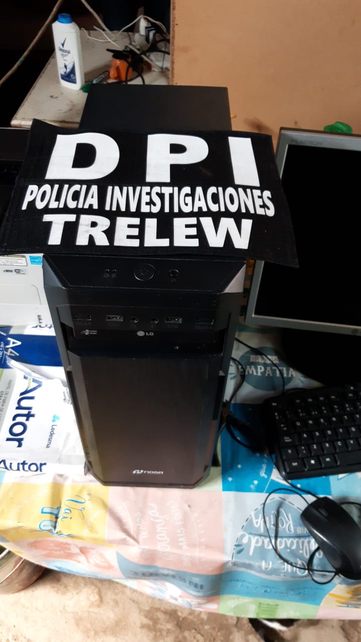 Este viernes, la División de Investigaciones Trelew de la Policía del Chubut,realizó allanamientos en los barrios Don Bosco y Moreira, donde se secuestró 1 monitor LED, 1 CPU, 1 impresora y elementos de informática.