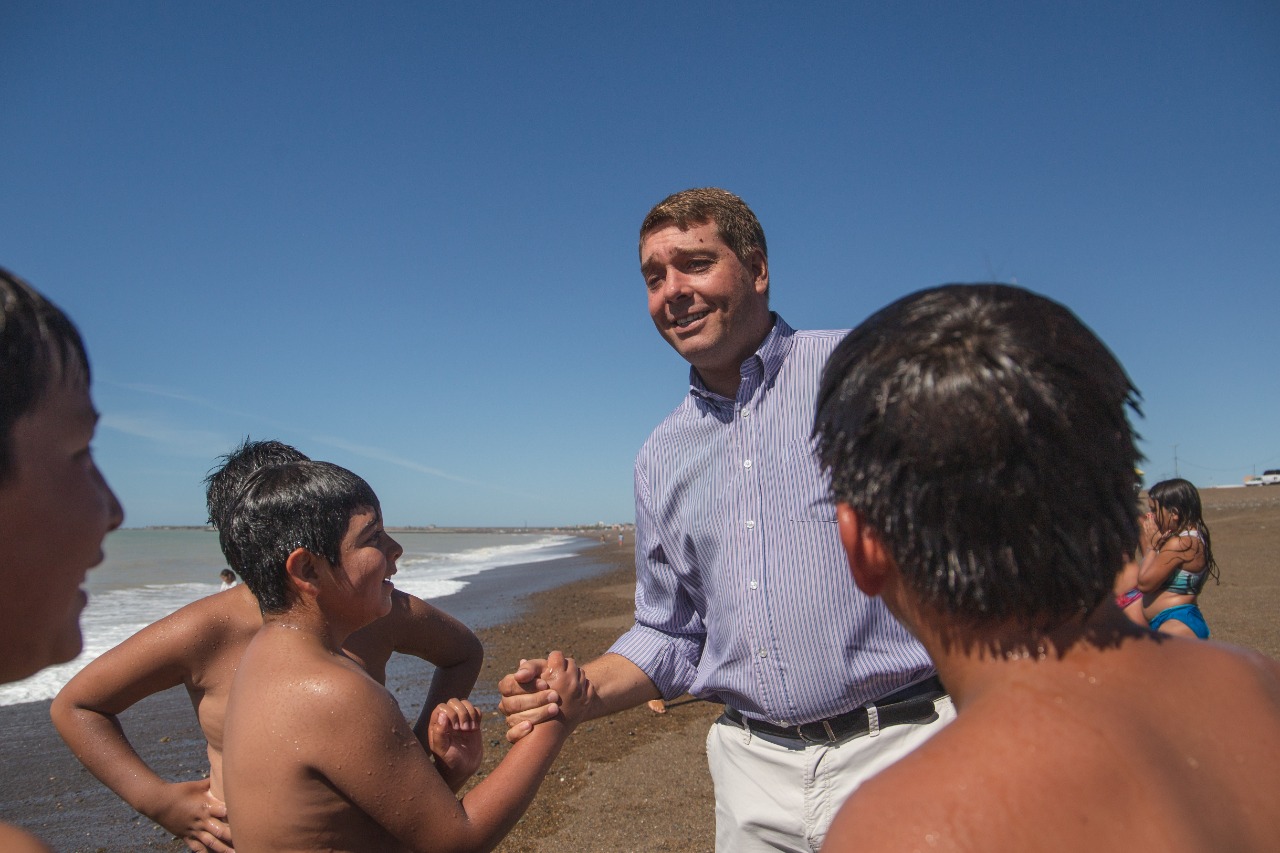 El intendente de Rawson, Damián Biss recorrió la colonia de verano que se lleva adelante en la costa de Playa Unión con la organización de la Municipalidad de Rawson.