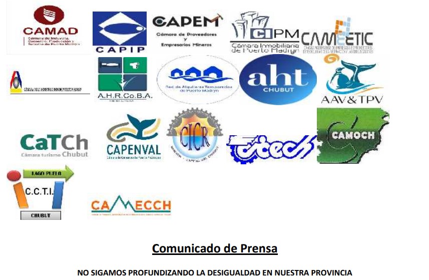 Las empresas que firmaron el documento son: Camad, Capip, Capem, Cipm, Cameetic, Ahrcoba, la Red de Alquileres Temporales de Puerto Madryn, Aht, AAV&TPV, Catch, Capenval, Cicr, Cicech, Camoch y la Cammech.